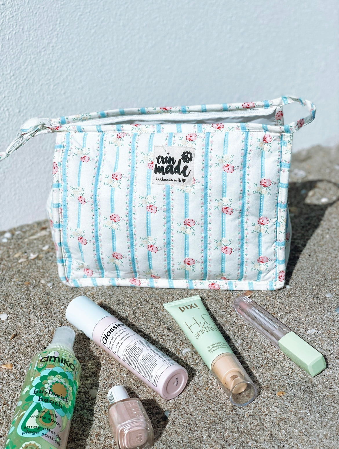 The Tessa Cosmetic Case is quilted, soft and compact, with interior lining and two pockets. Zip closure at top.